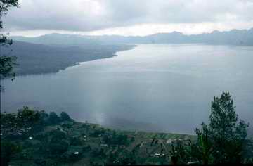 Das Batur Massiv mit seinem Vulkankrater liegt auf einer Höhe von 1717 Meter. Einen besonders schönen Blick hat man von Penelokan aus. Hier befinden sich mehrere Restaurants von deren Terrassen man einen direkten Blick auf den Vulkan und See hat. |